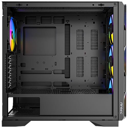 Sleek Geometric Design with Massive Airflow The Antec AX1000 ARGB is a mid-tower gaming case defined by its striking geometric front panel and high-performance thermal capabilities. Designed for enthusiasts who want to showcase their build without obstruction, it features a full-view tempered glass side panel equipped with a tool-free pin mechanism for easy access and enhanced durability. Behind the high-airflow mesh front panel lies a powerhouse cooling setup, consisting of four pre-installed 140mm ARGB PWM fans (three at the front and one at the rear) that work in tandem with a strategic bottom-up ventilation design to ensure your high-performance components stay cool under the heaviest gaming loads.