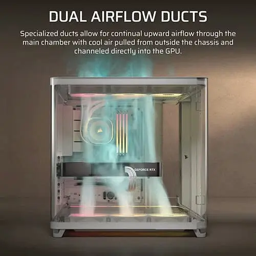 The roomy interior was designed specifically for the most powerful GPUs with plenty of room to breathe and dual airflow ducts to channel cool air through the GPU for maximum performance.
