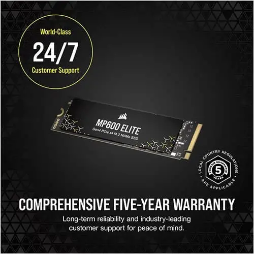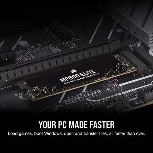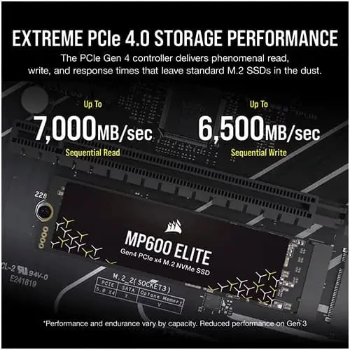 The CORSAIR MP600 ELITE provides PC-boosting PCIe 4.0 storage performance capable of reaching sequential read speeds of up to 7,000MB/sec and writes of up to 6,500MB/sec.