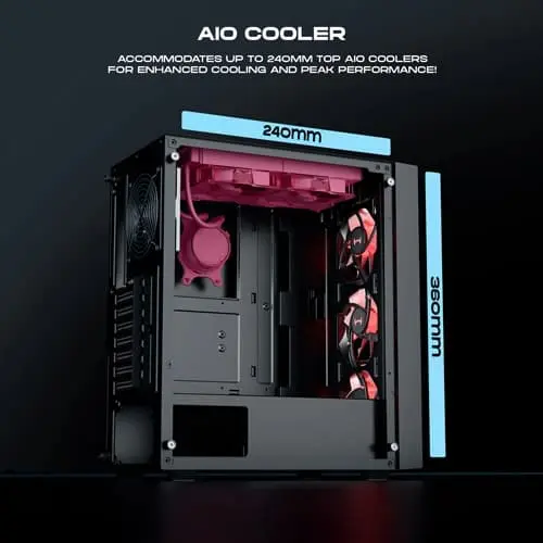 – Bottom: 120mm x 2 (optional) - PSU: Bottom, 200mm