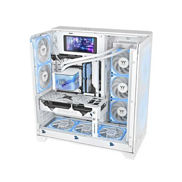 The MAGCurve 360 Ultra ARGB Sync is engineered to impress, featuring a stunning 6.67″ curved AMOLED display. With the innovative AI Forge function, you can easily create personalized backgrounds. It is equipped with TOUGHFAN EX 120 ARGB Sync fans featuring a Swappable Fan Blade Design, providing flexible airflow direction. Its MagForce 2.0 Quick Magnetic Connections allow for effortless installation and superior cable management, ensuring excellent cooling performance while remaining visually striking.